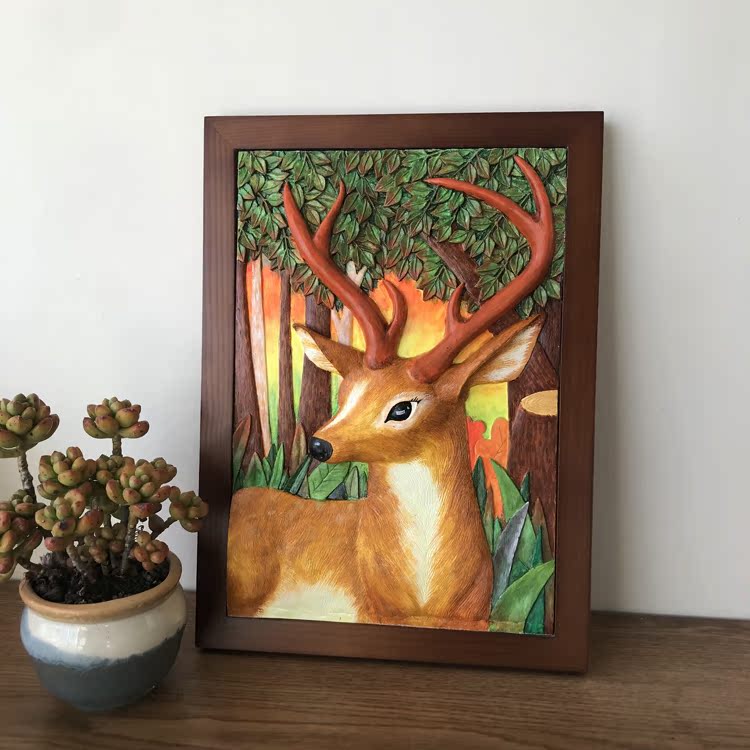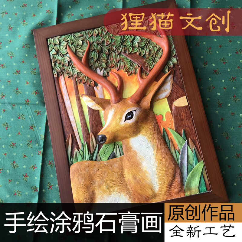立体浮雕石膏画装饰画石膏娃娃涂色白胚男女孩手工diy画动物系列