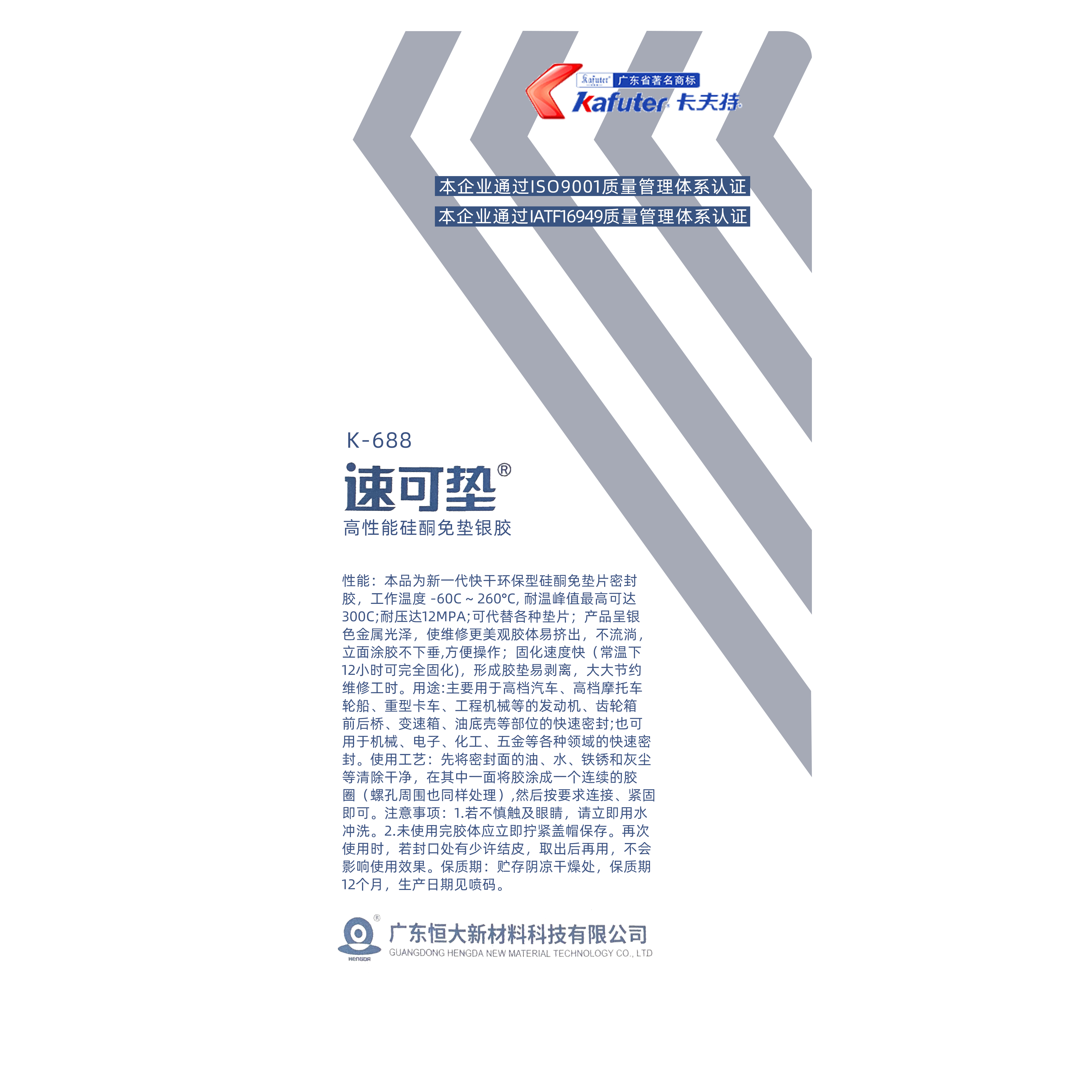 卡夫特银胶速可垫免垫片胶K-688快速密封胶汽车摩托舰船发动机水泵歧管阀盖齿轮箱节温器密封卡特夫卡福特