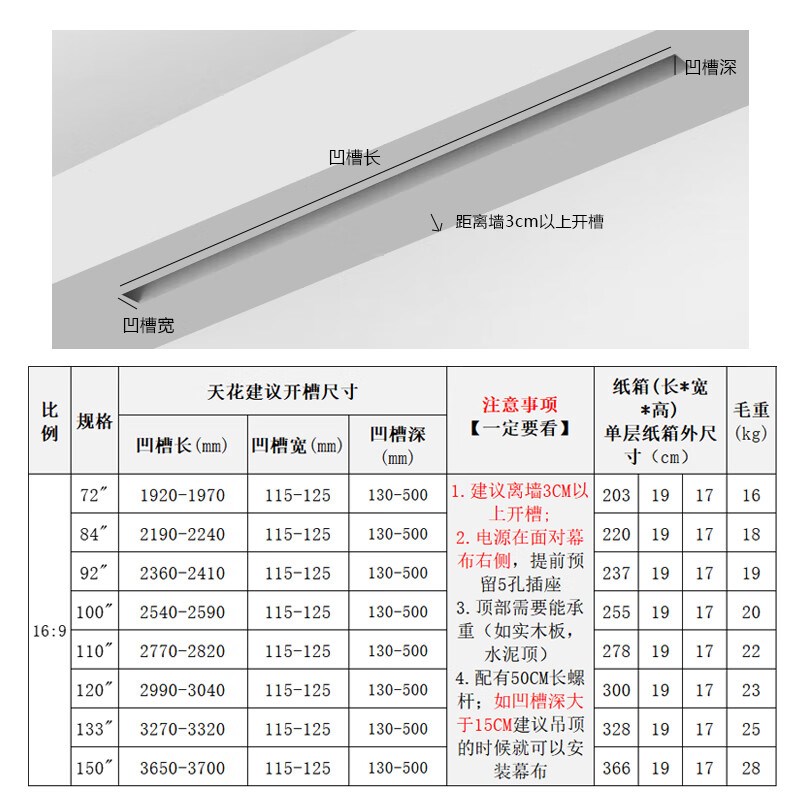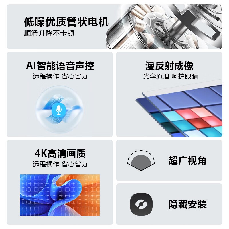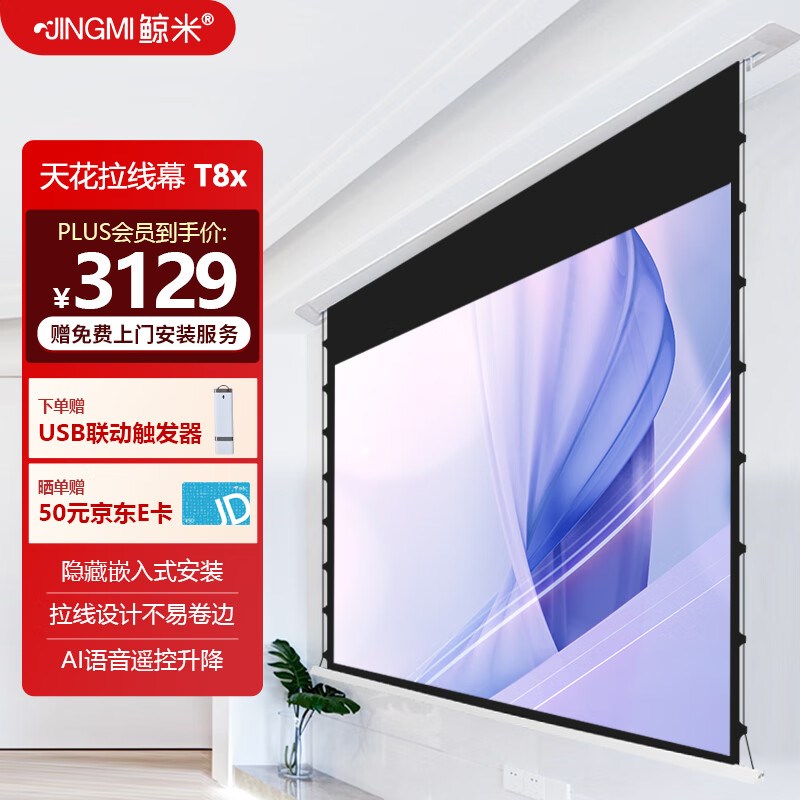 鲸米隐藏嵌入式天花幕布金属抗光T2X/T3X/T8X电动拉线遥控家用