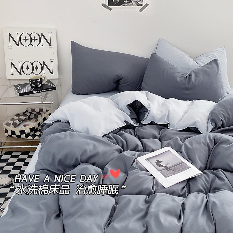 四件套床单被套被罩简约纯色学生宿舍水洗棉3三件套床笠床上用品4