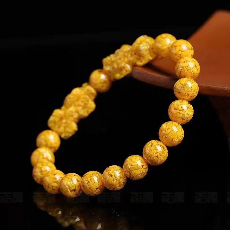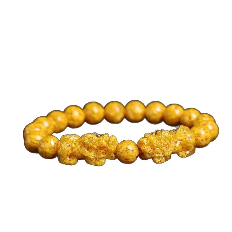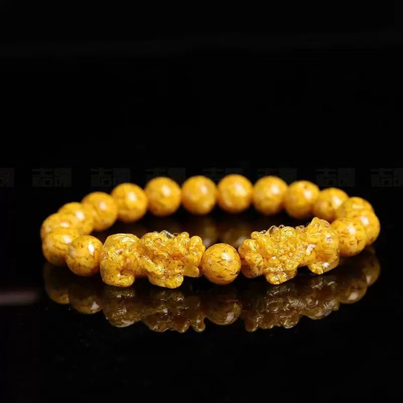 天然原矿朱砂透光晶体砂雄黄双貔貅手串烫金手链女礼物批发单珠