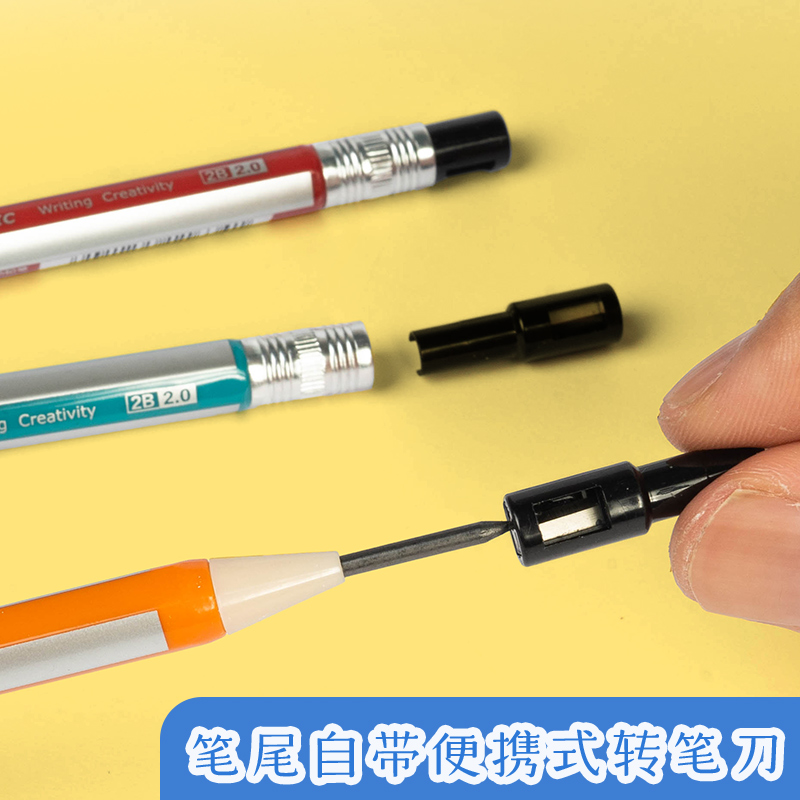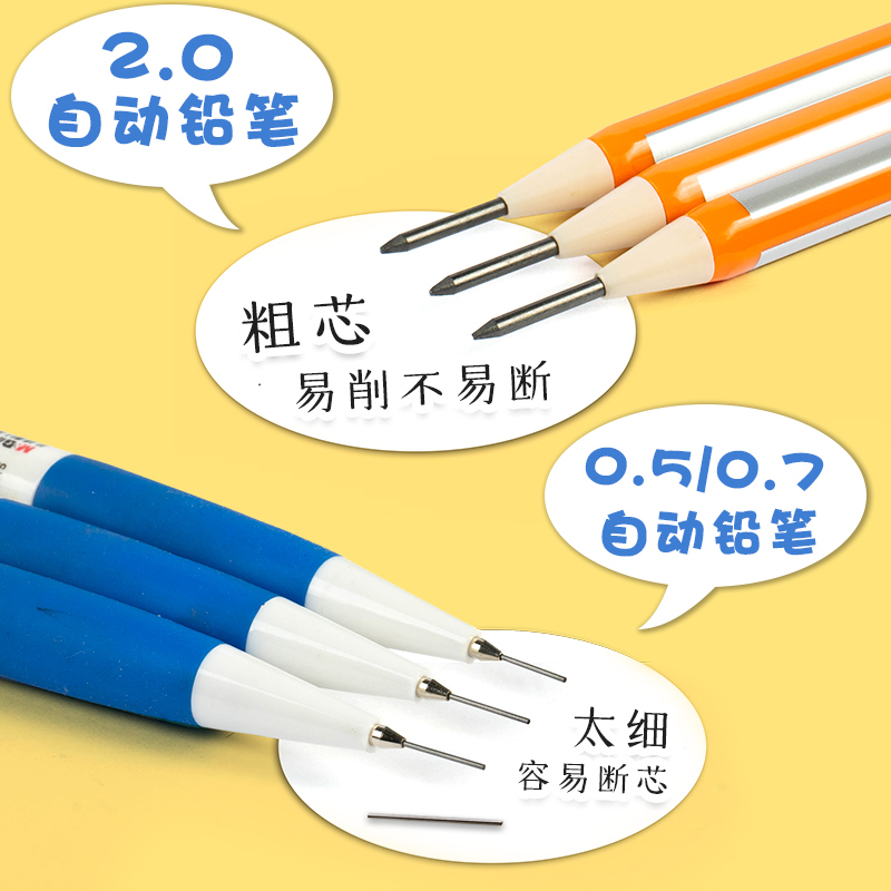 晨光2.0mm粗头自动铅笔按动粗头笔芯铅芯2b2比小学生儿童写不断的不断芯考试绘画专用练字免削活动削笔刀