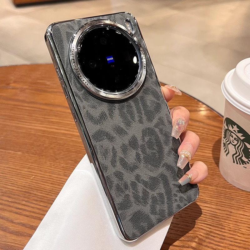 电镀豹纹素皮适用vivoX200Pro手机壳新款女X200ProMini高端X100SPro个性欧美x100ultra大孔不包镜头防摔外壳