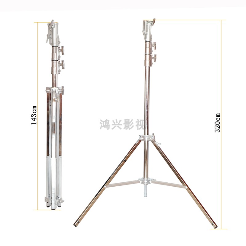 影视不锈钢重型灯架5号腿镝灯使用三脚支架最高3.2米中号两节钢腿