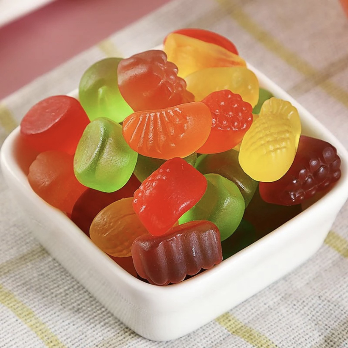 多彩橡皮软糖酸砂沙爆浆涂油水果味橡混搭软糖4D果汁软糖儿童零食