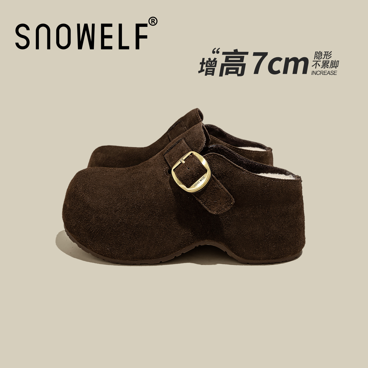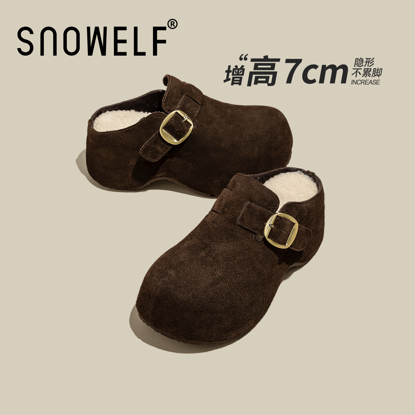 驼色厚底勃肯鞋子2025新款爆款加绒一脚蹬懒人鞋真皮百搭复古女鞋