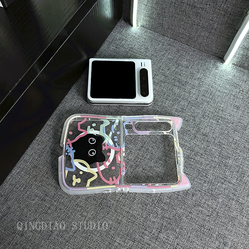 轻调 ins萌宠立体猫耳彩色线条黑猫适用于华为Pura X手机壳全包新款purax典藏版折叠屏p50宝盒翻盖防摔保护套