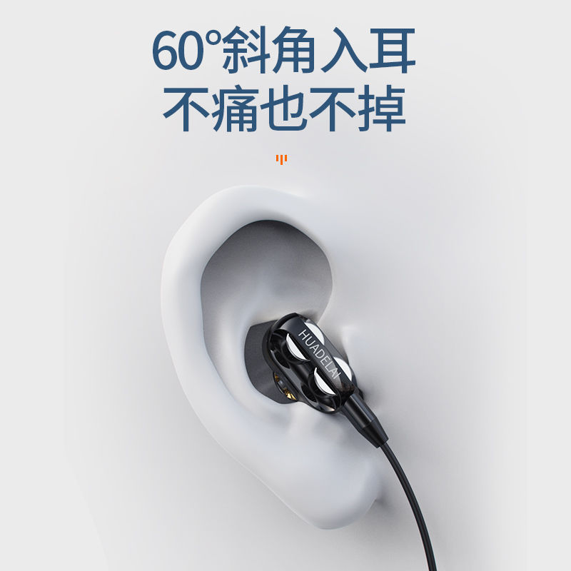 新双动圈耳机有线高音质IOS鸿蒙安卓手机通用带麦K歌游戏入耳式耳