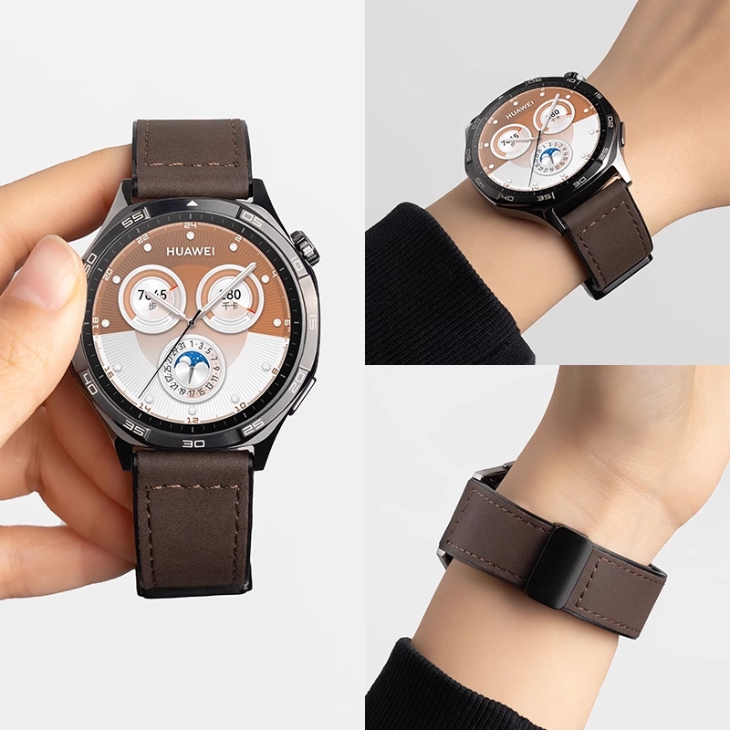 适用华为GT5疯马纹皮质表带watch3pro手表gt4pro高级感watchgt5磁吸gt3真皮智能4pro运动gt女2男buds秋冬新款