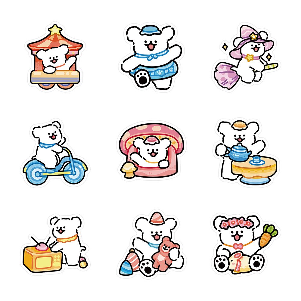 【大图释官方授权】102张线条小狗卡通马尔济斯可爱装饰贴纸手机壳行李箱手账diy素材贴画防水女孩儿童立体贴
