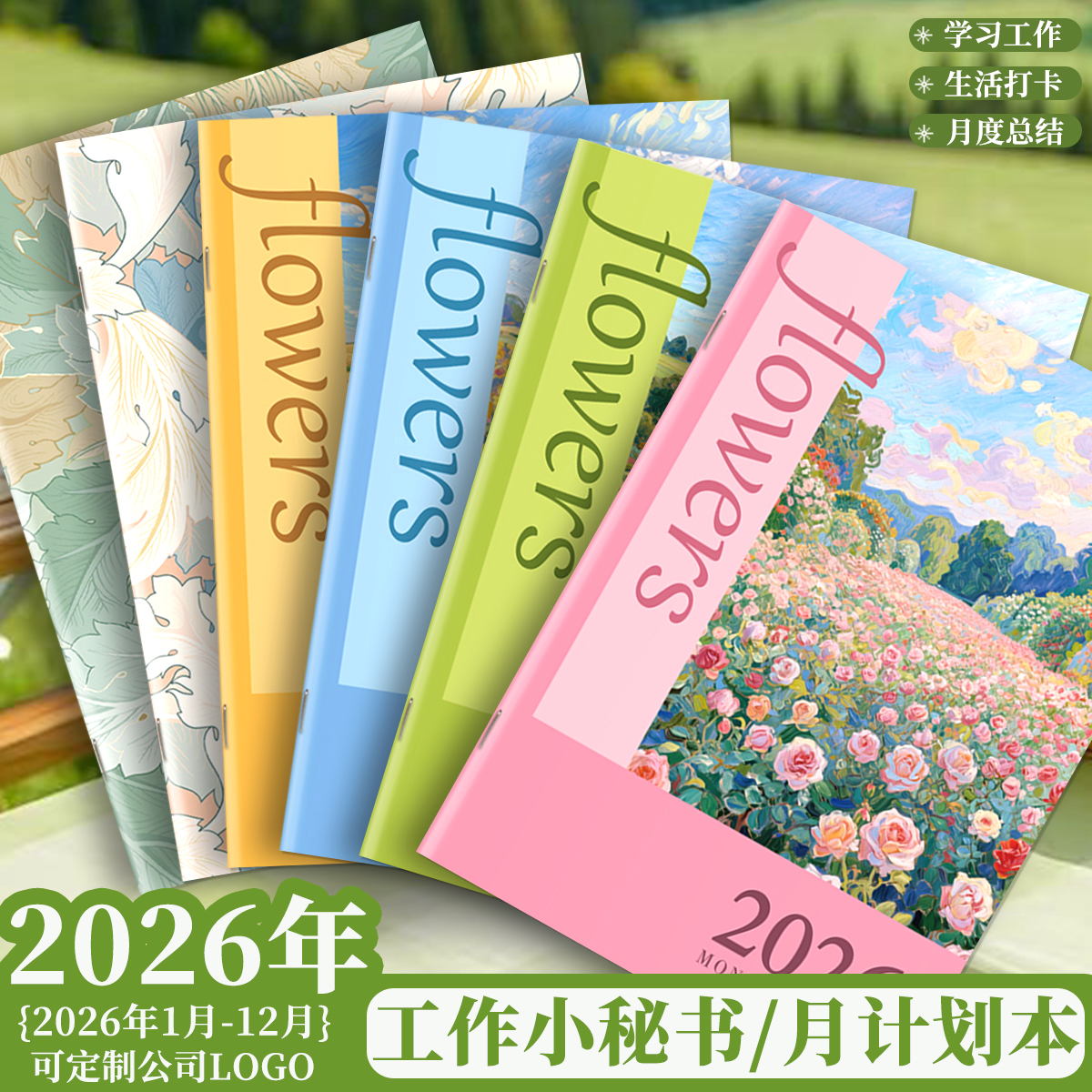 2026年高档工作小秘书A4加厚款油画系列日历本效率手册印刷定制