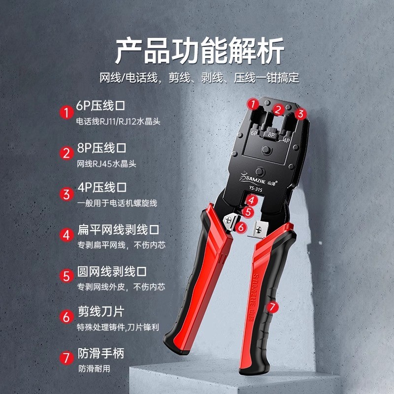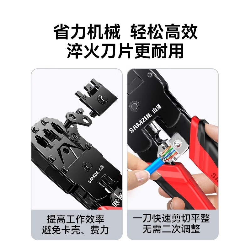 山泽网线钳水晶头压线钳家用接网线钳子专业级超五类6六7七网络接头套装多功能夹线钳测试仪工具包宽带线制作