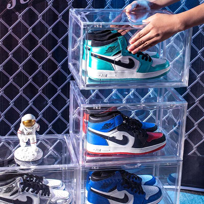 加厚透明鞋盒大尺寸侧开透明防尘收纳盒可叠加展示盒球鞋收藏盒