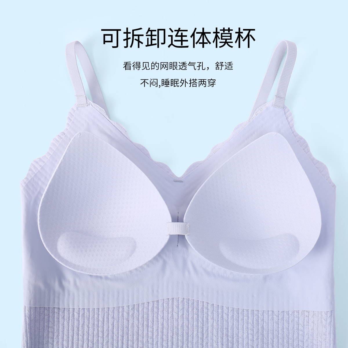 为体贴大胸吊带背心胖mm保暖带胸垫免穿文胸一体大码显瘦打底薄款