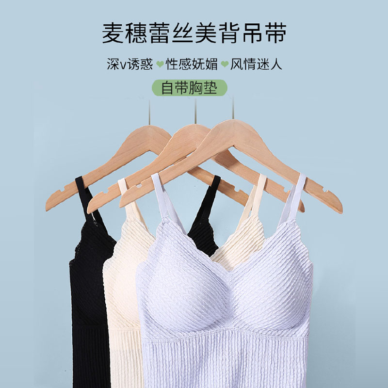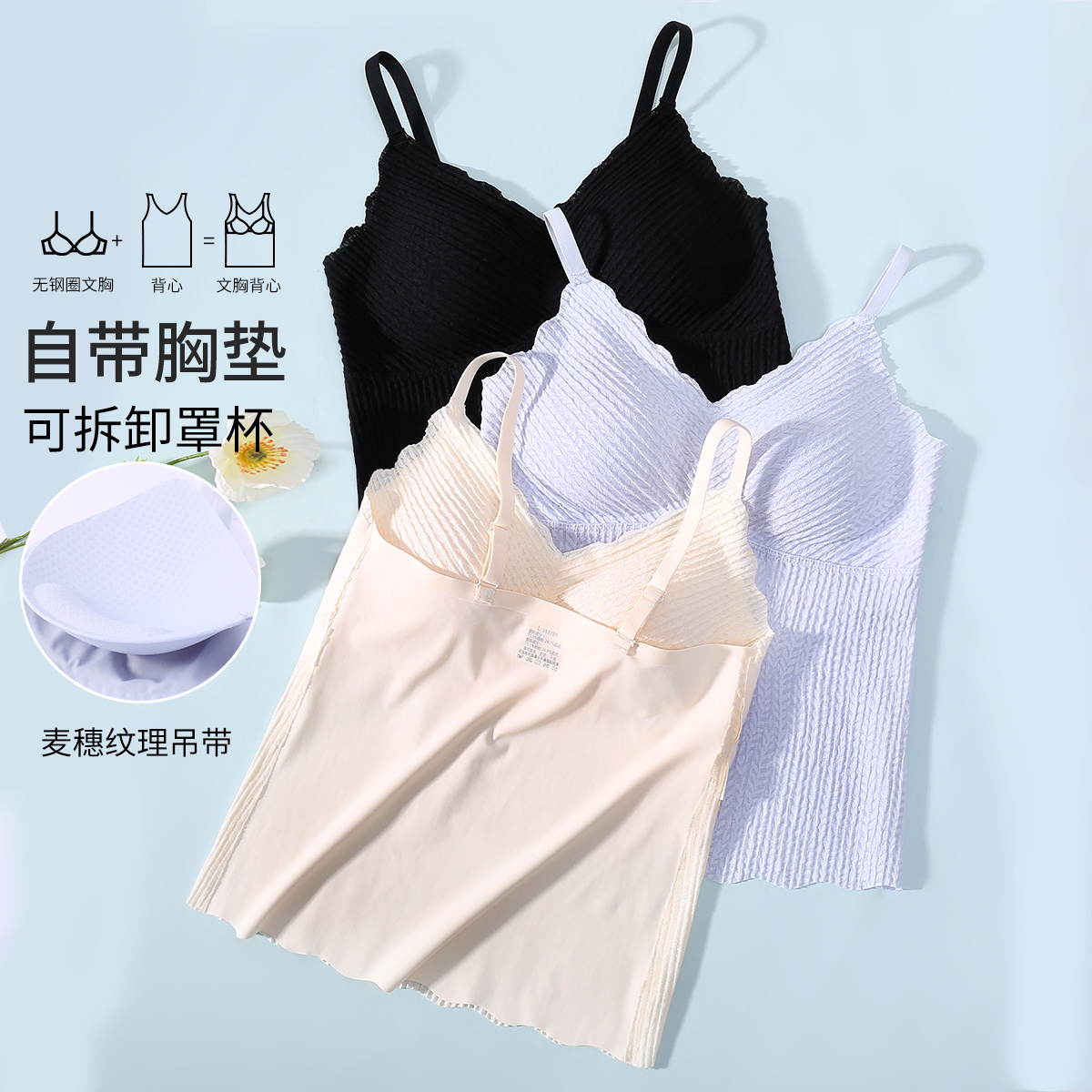 半练白色蕾丝吊带背心女新款带胸垫打底内搭免穿文胸美背上衣外穿