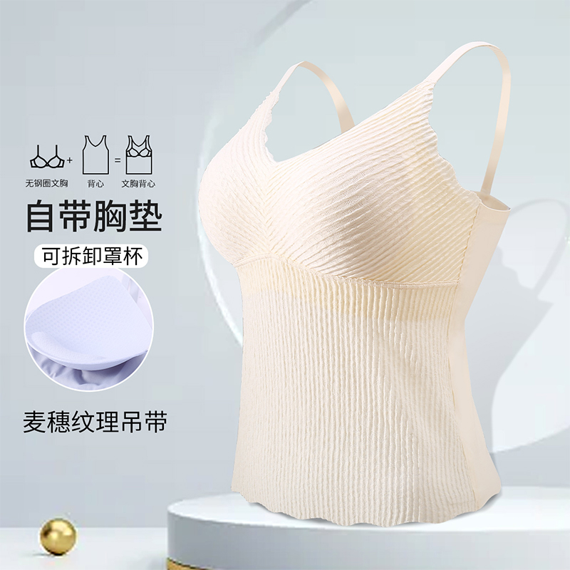 半练纽扣带胸垫夏季背心吊带女外穿内搭打底文胸一体上衣免穿内衣