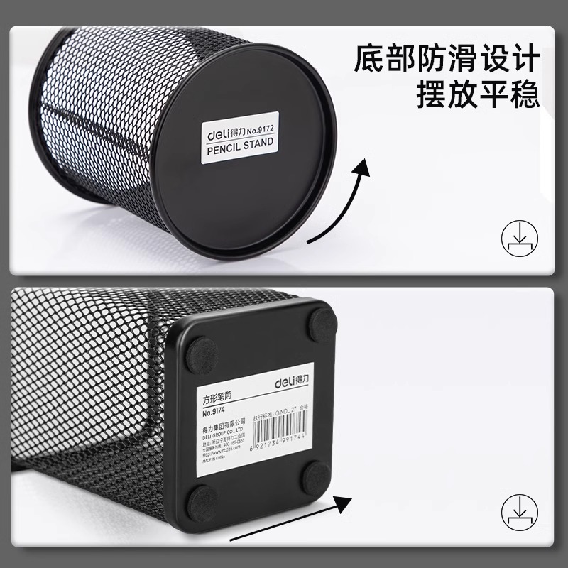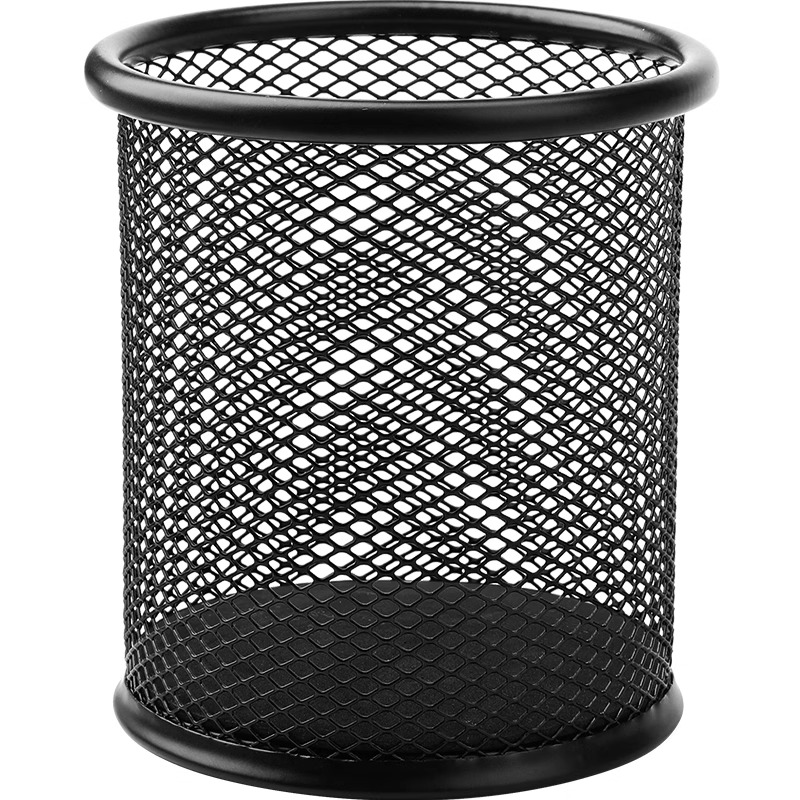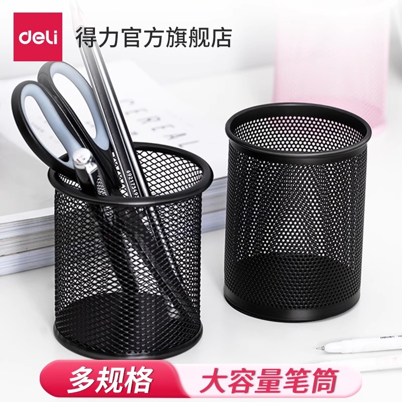 得力笔筒圆形金属网格笔插文具商务笔类收纳简约网纹创意时尚化妆刷收纳筒笔盒大容量多功能简约办公用品