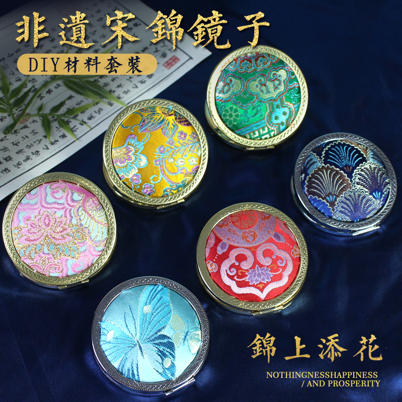 宋锦镜子非遗手工DIY材料包刺绣小化妆镜随身镜团建沙龙区域贝壳