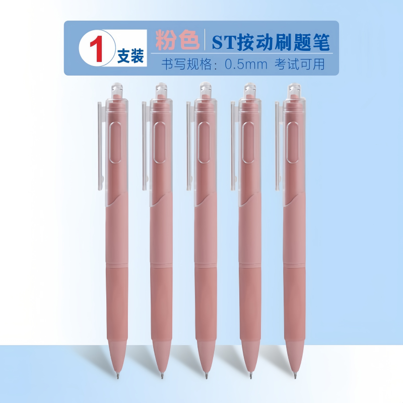 ST刷题笔高颜值按动中性笔圆珠笔黑色水笔小学生专用考试0.5速干碳素笔水性黑笔按压式做笔记签字笔非按斤卖