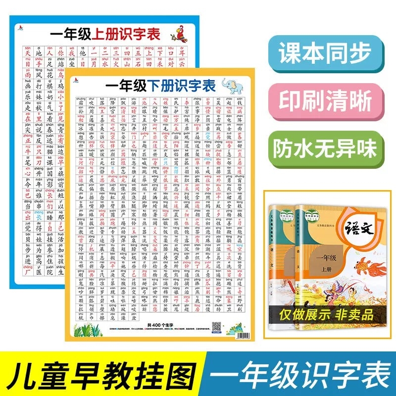 小学生语文识字表挂图一年级上册下册儿童生字表认字生字卡拼音加减法口诀表墙贴二年级10以内数学口算题卡天天练益智认知启蒙思维