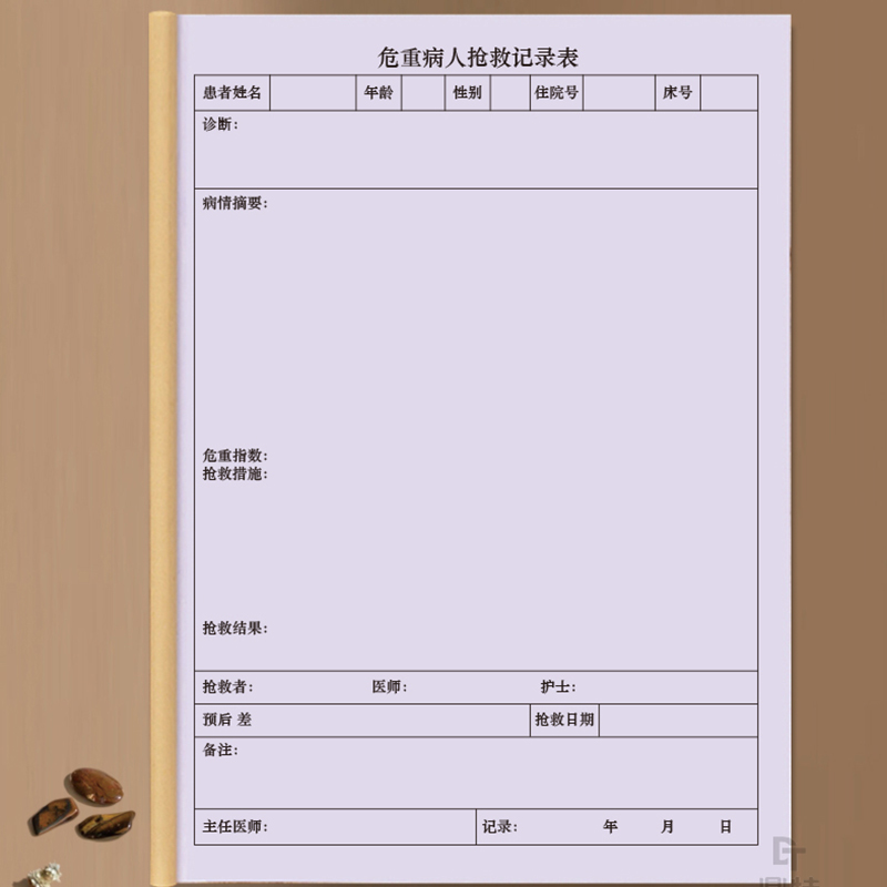 危重病人抢救记录表特殊疑难病例讨论登记本急救就诊患者门诊医院医疗机构记录表危重症病人抢救记录医院急诊