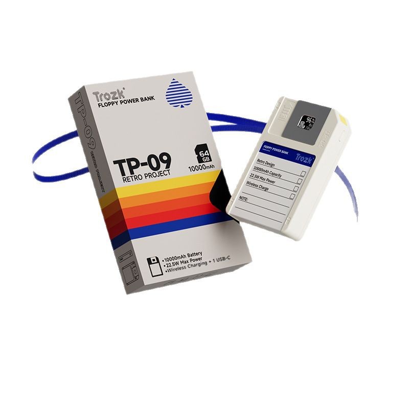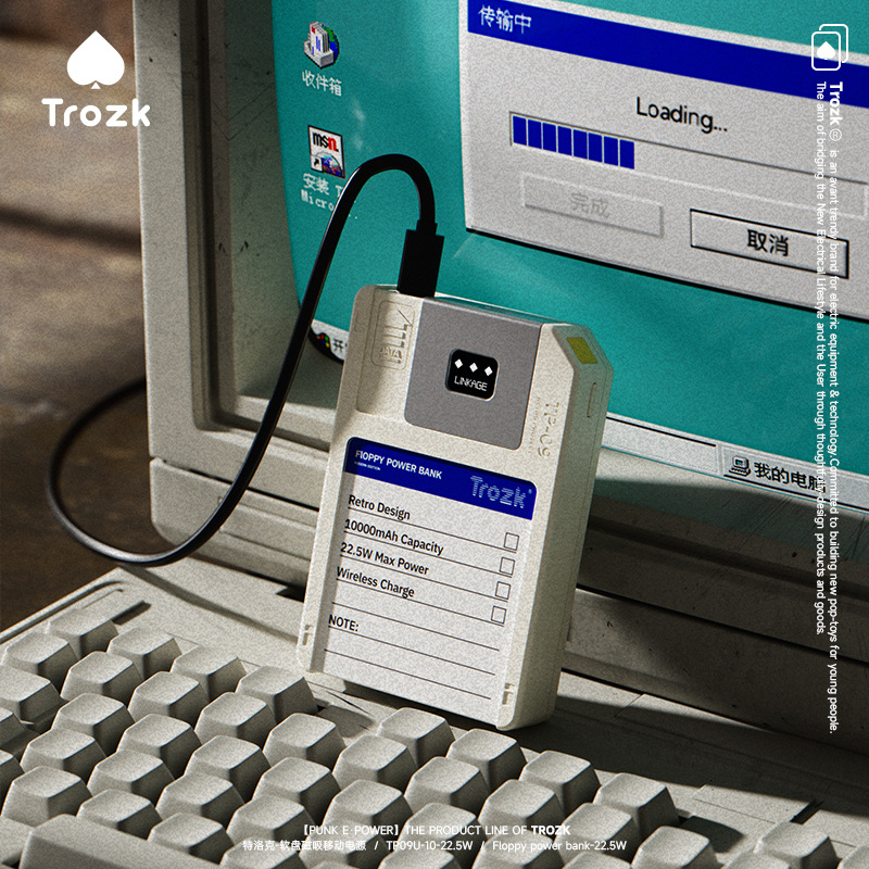 Trozk特洛克软盘磁吸无线充电宝带U盘快充大容量10000毫移动电源