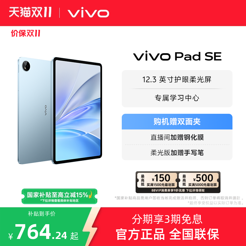 【广东国补可用 直播间限时领红包】vivo Pad SE新品上市学生开学好物