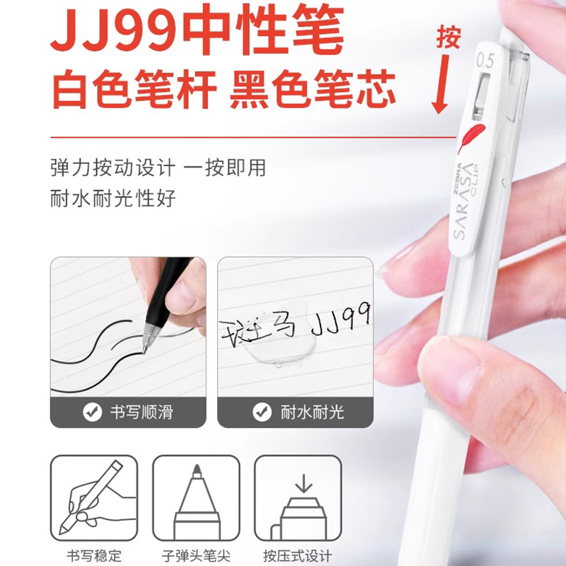 日本ZEBRA斑马中性笔JJ99赤根红色羽毛按动学生用大容量考试刷题笔高颜值JJ15白杆水性笔黑色0.5mm日系文具