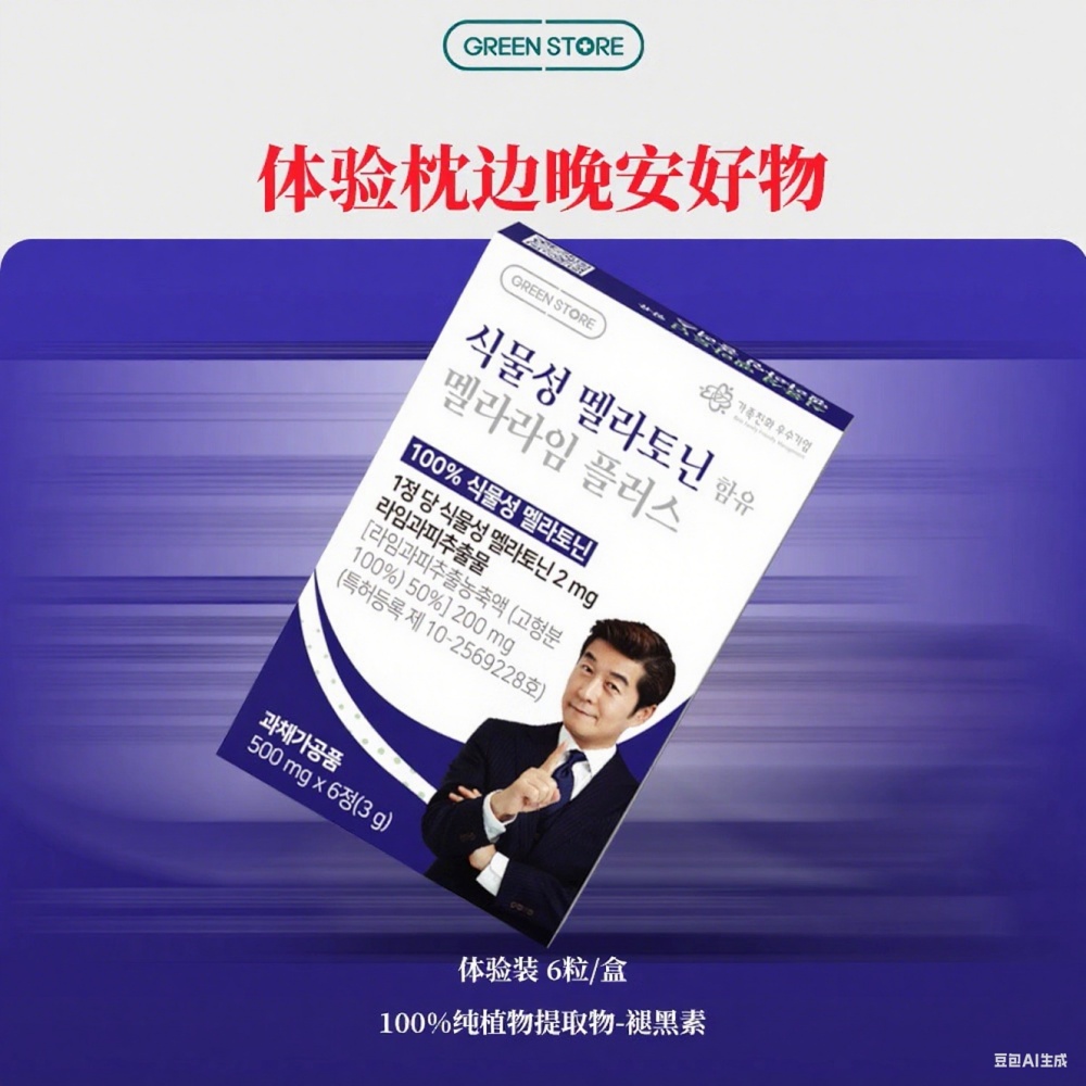 【U先试用】进口Greenstore纯植物提取褪黑素助眠片睡眠试用装6粒
