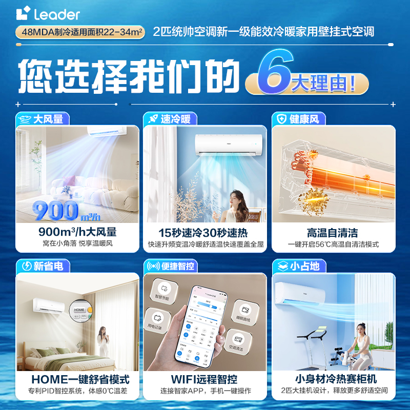 【2匹挂机】海尔空调一级冷暖家用壁挂智能WIFI大风量净省电48E1
