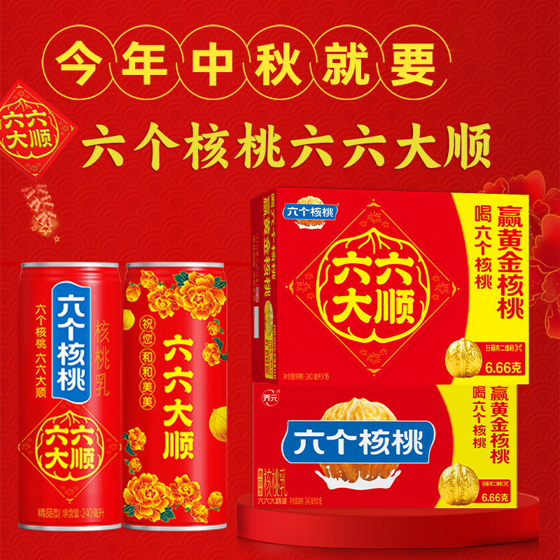 【中秋礼盒】养元六个核桃六六大顺精品型240ml*16罐饮料整箱