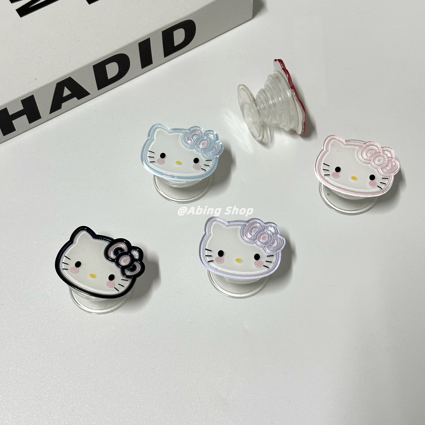 日韩ins可爱卡通KT猫手机壳粘贴式懒人伸缩蝴蝶结Kitty猫气囊支架