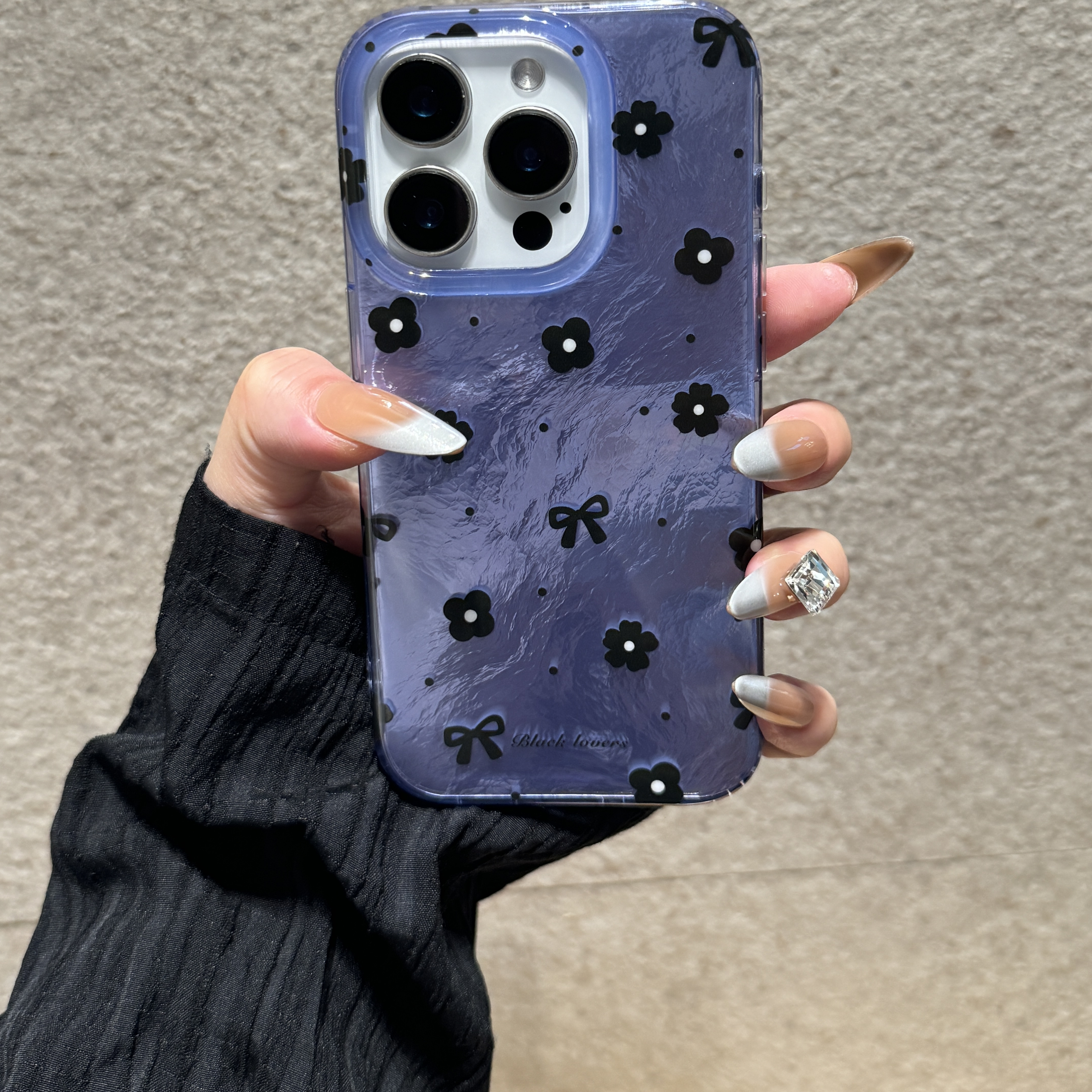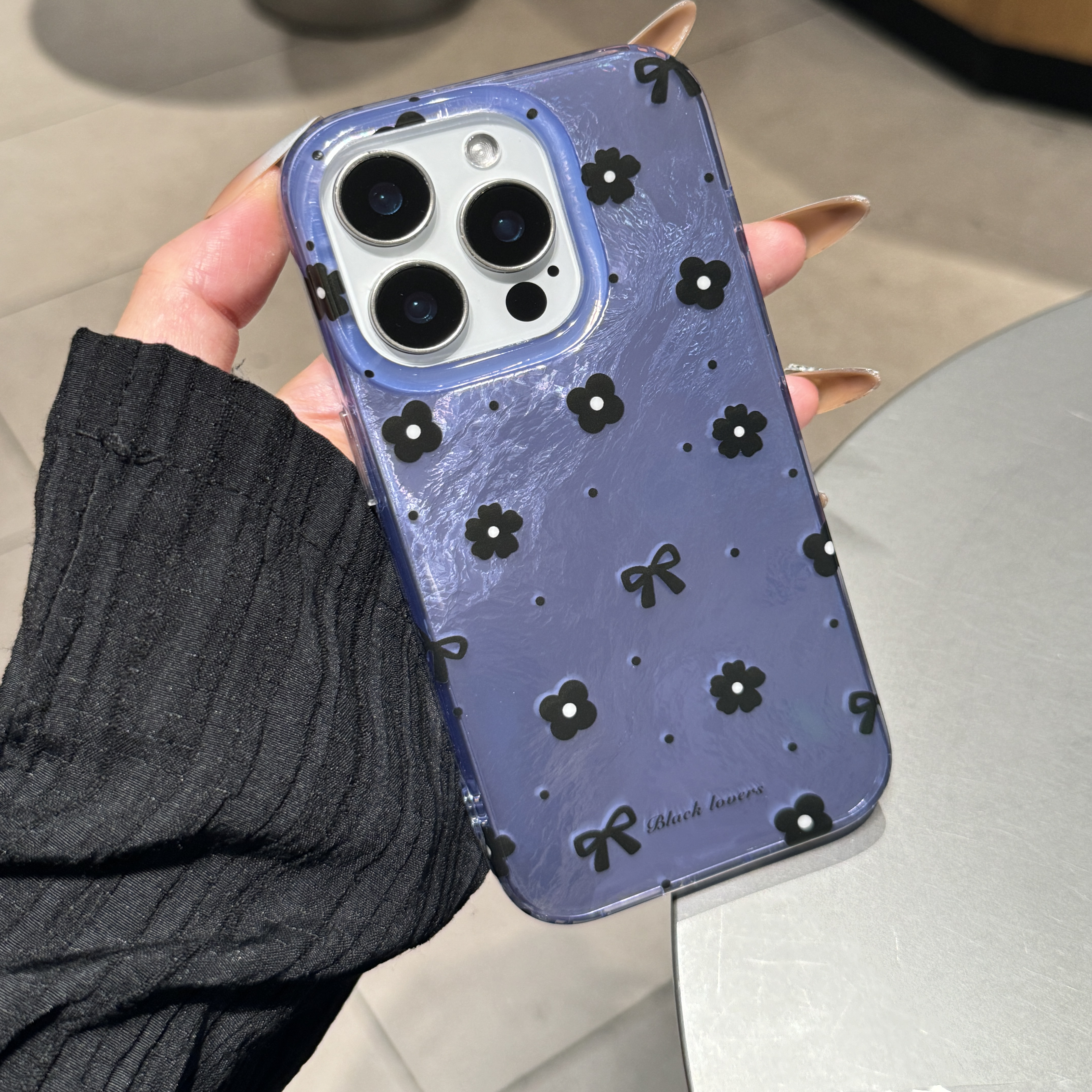淳于亦ins风韩系黑色蝴蝶结花朵适用苹果16promax手机壳15pro防摔保护14/13硅胶软壳创意个性简约蝴蝶结花朵