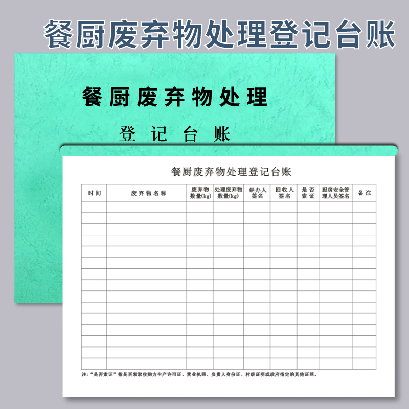 餐厨废弃物处理记录本食品进货台账记账本食品添加剂使用登记表厨房消毒食堂食品留样餐具清洗消毒记录表通用