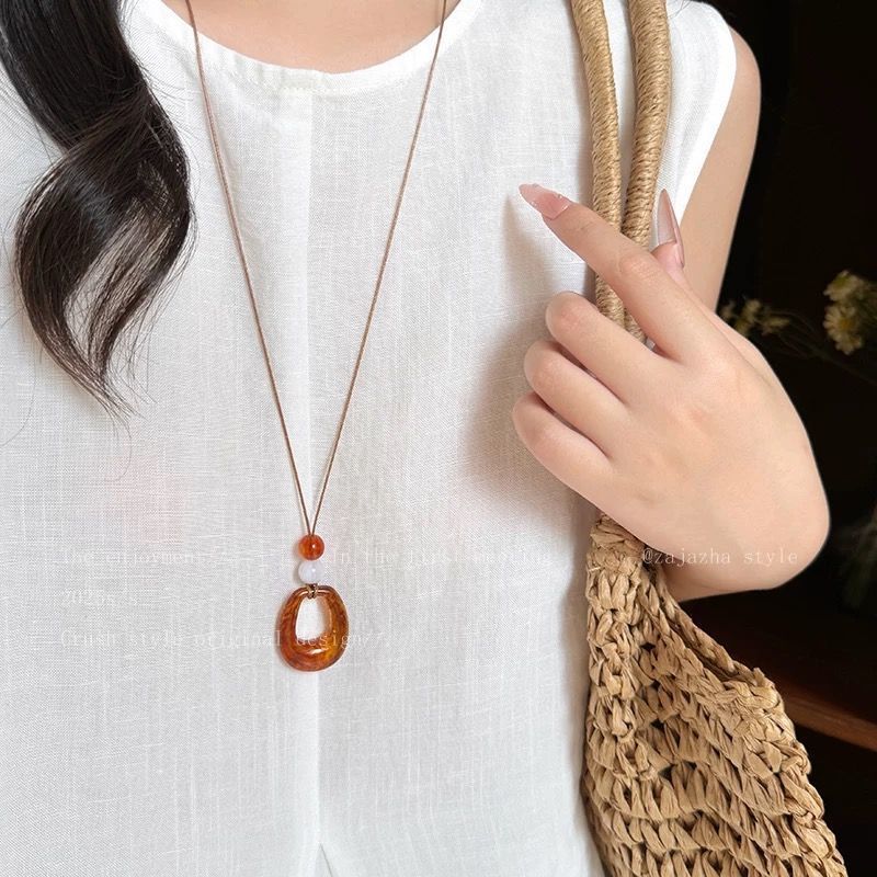 波西米亚串珠小众项链女2025新款吊坠高级感轻奢锁骨链颈链配饰秋