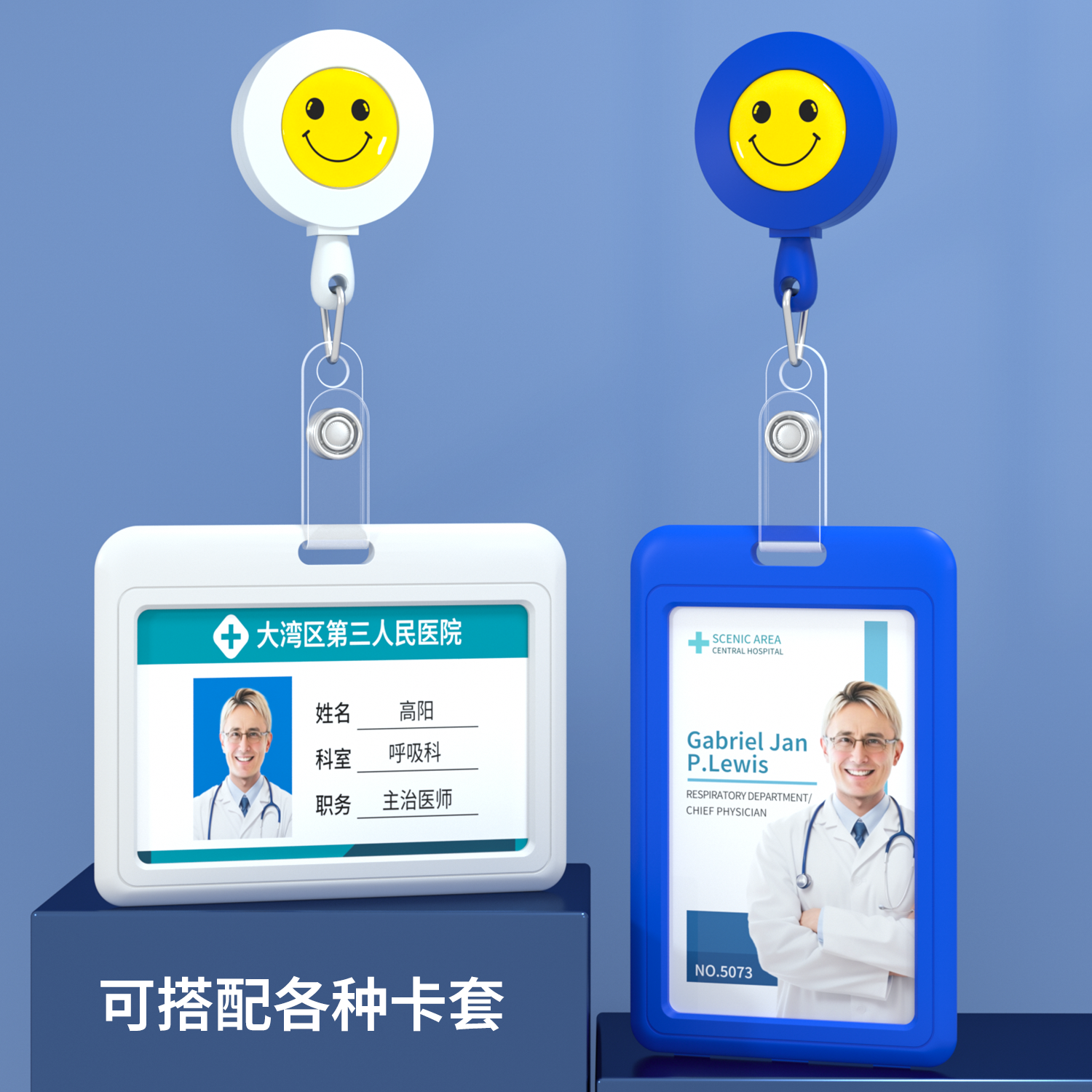 优质伸缩工作证件卡套伸缩扣门禁卡套打卡工作牌易拉扣笑脸扣拉线