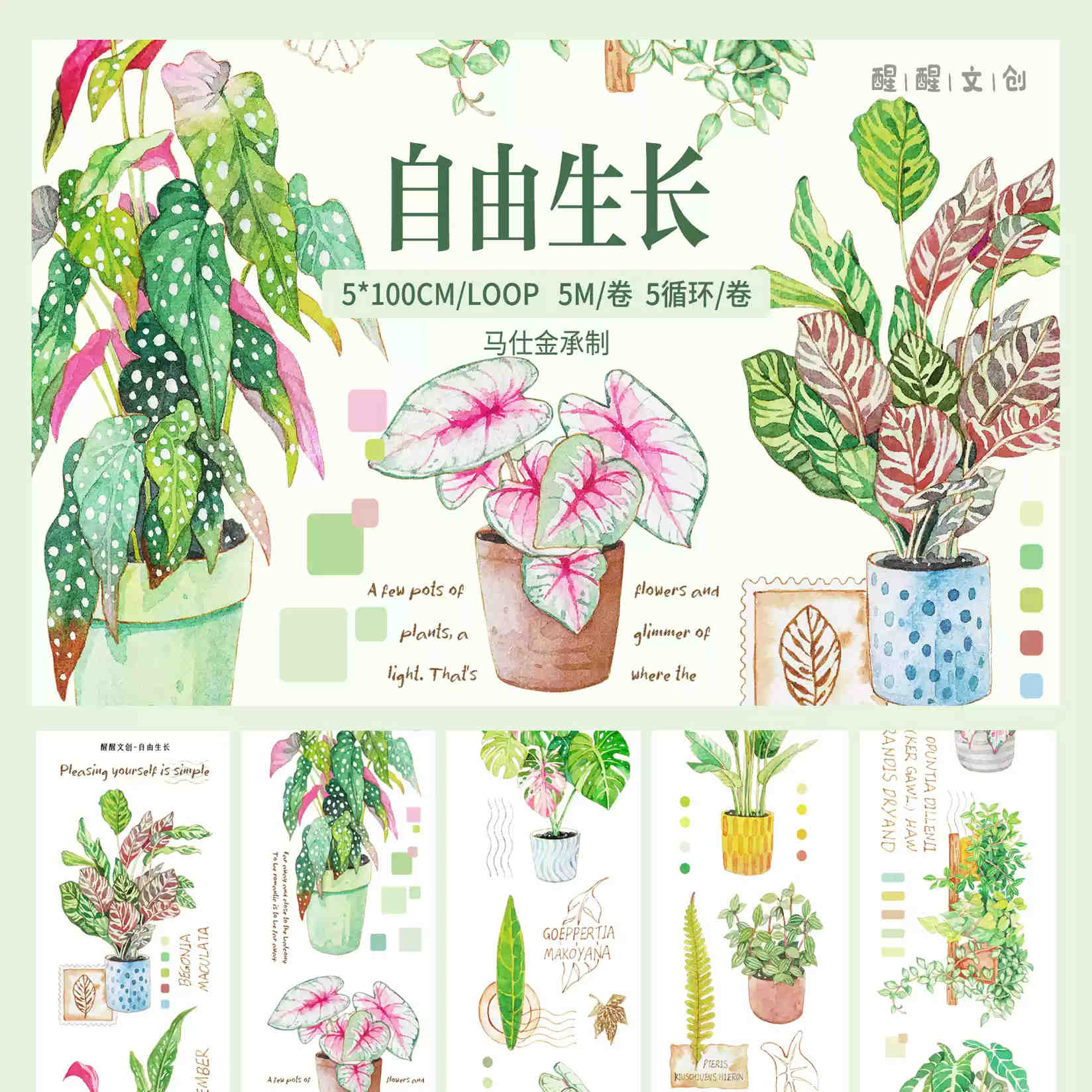 醒醒文创第6弹小巷人家上班自由生长植物盐系日常生活胶带分装