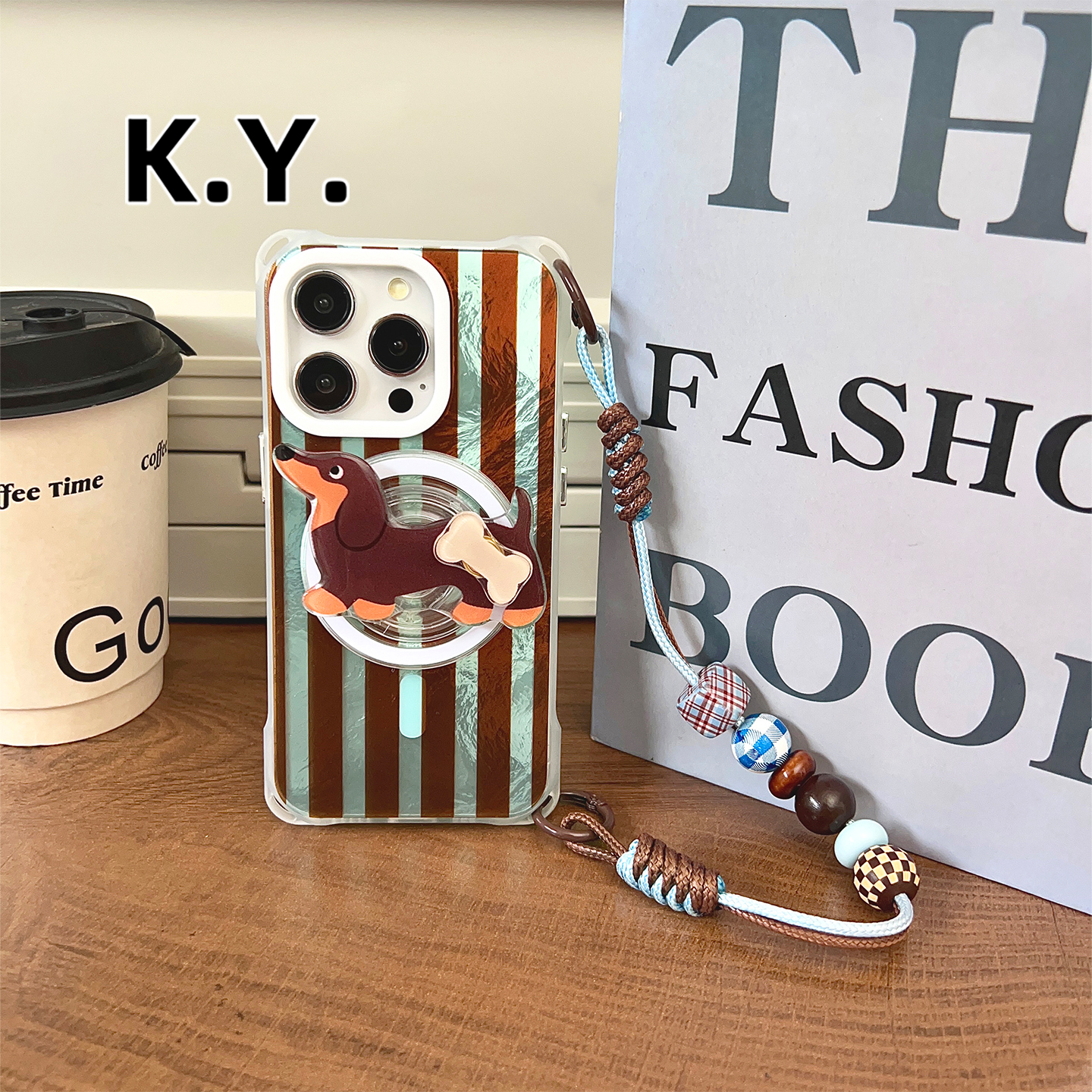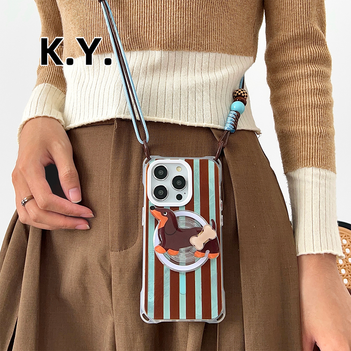 卡通腊肠狗磁吸支架手机壳带挂绳适用于苹果17promax华为mate60pro背带斜挎iphone16pro四角开孔VIVOX200U