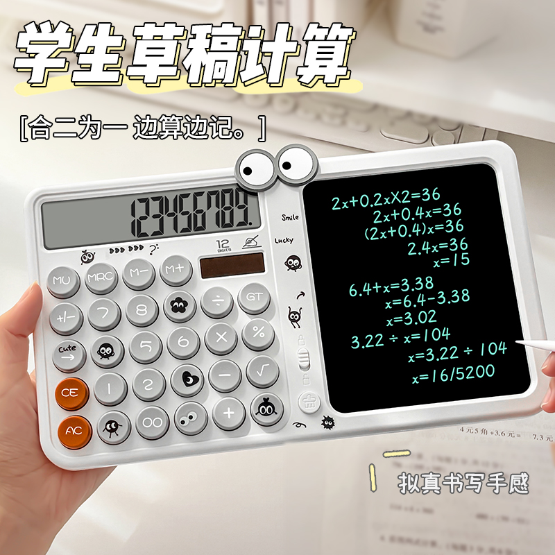 高颜值计算器手写板二合一学生专用小学四年级草稿记账会计考试办公多功能电子小型女生女神机械按键计算机