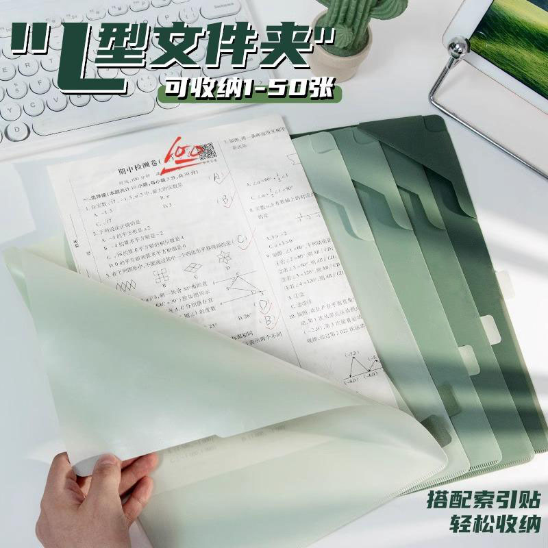 高颜值L型文件夹半透明插页A4纸收纳夹加厚防水单页资料夹小学生