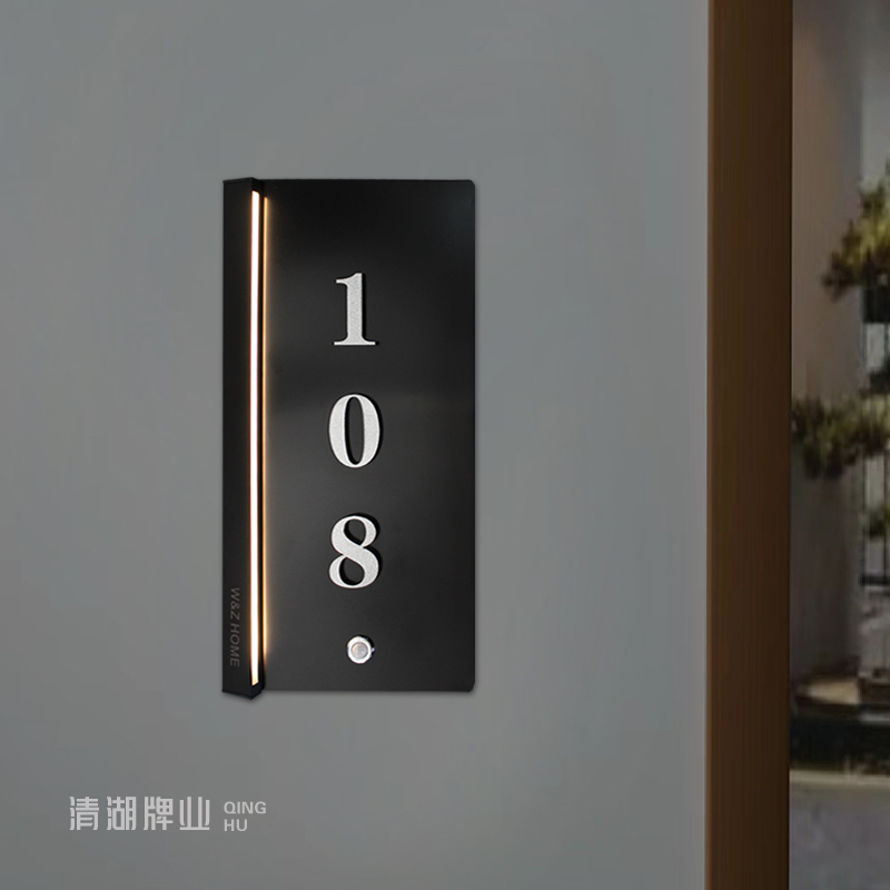 定制高档充电感应发光门牌家用入户门号牌酒店包厢大门别墅牌号码牌金属极简工业风创意门牌灯入户门灯不锈钢