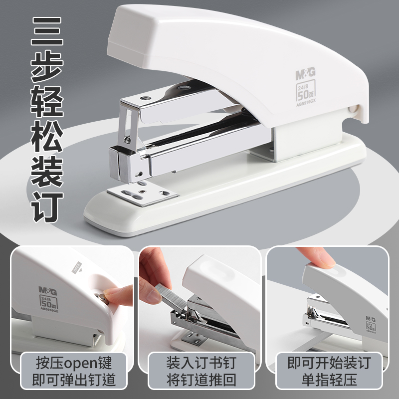 晨光省力型订书机学生用大号加厚办公用订书器家用型多功能便携钉书机可订50页厚层订书神器外卖打包专用