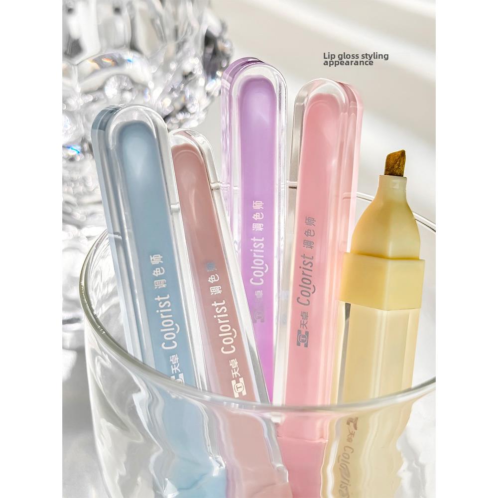 集物社淡色系护眼荧光笔新国风围炉煮茶萤光笔学生用高颜值彩色记号笔大容量划重点标记手账专用银光萤光笔