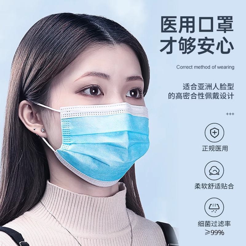 医用口罩一次性医疗三层正品官方旗舰店单独包装成人女独立男秋冬