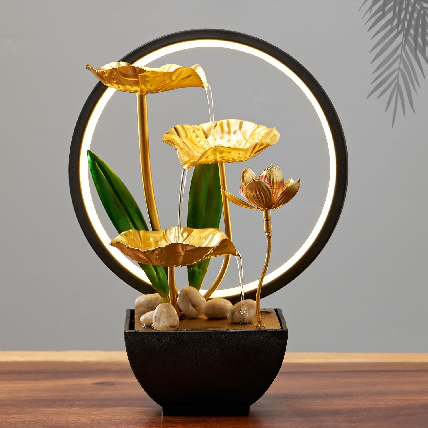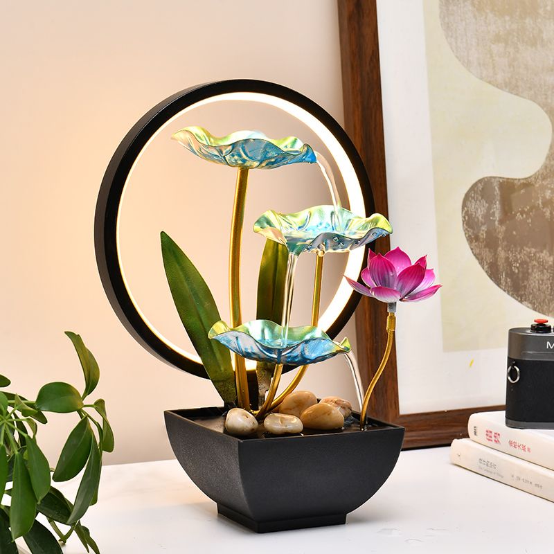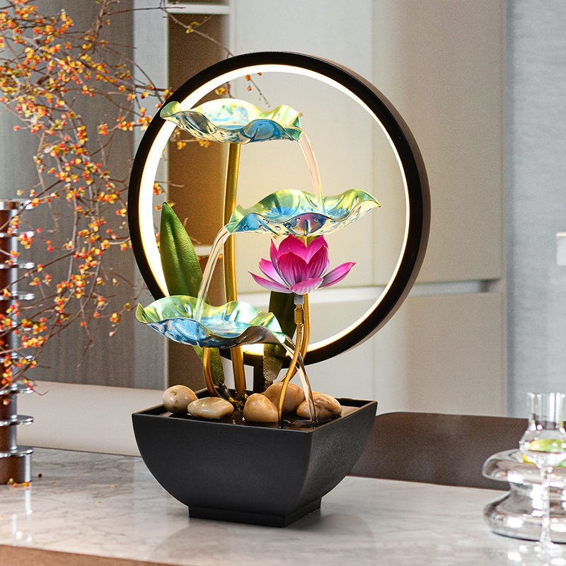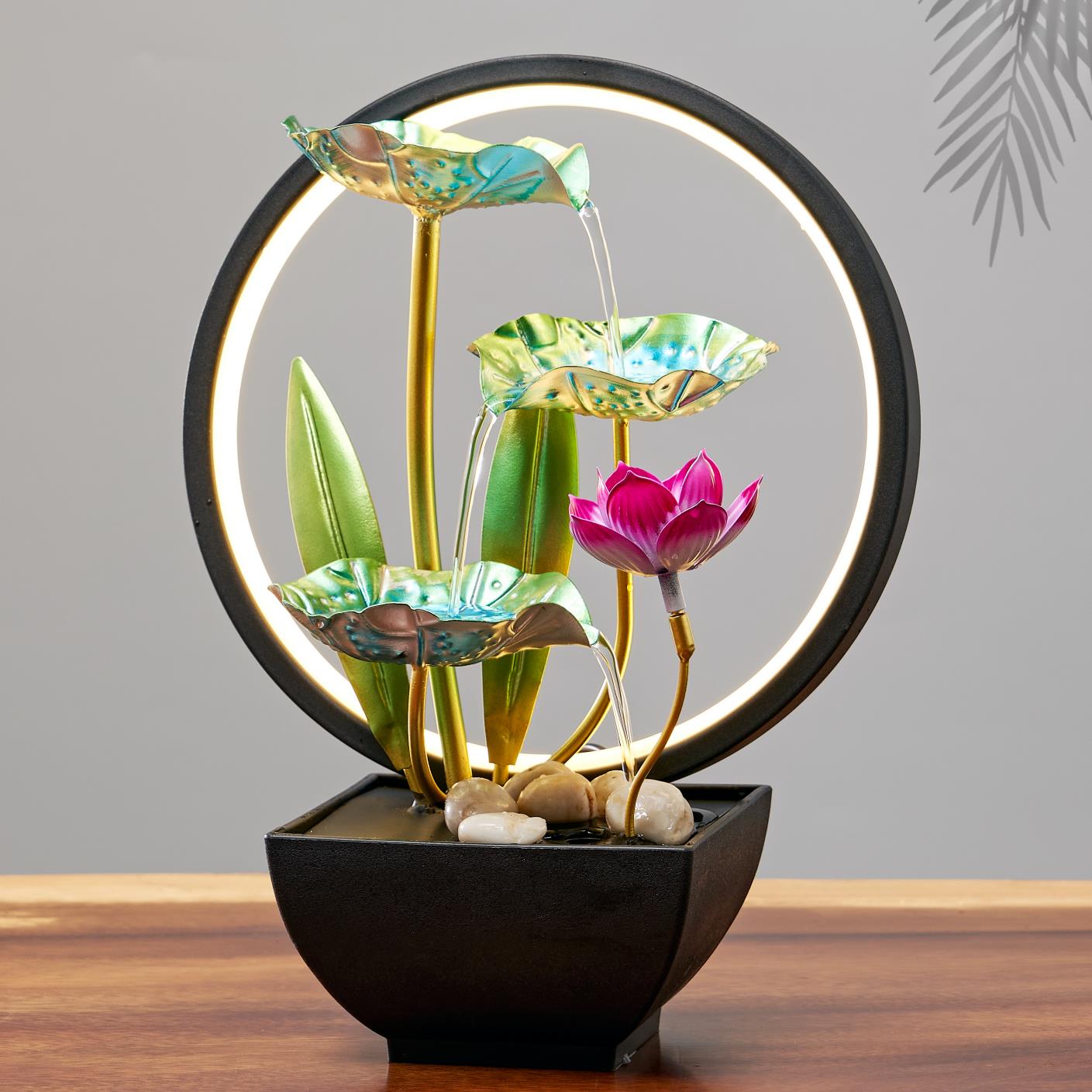 荷塘月色招财流水摆件循环水办公室电视柜玄关客厅桌面轻奢装饰品