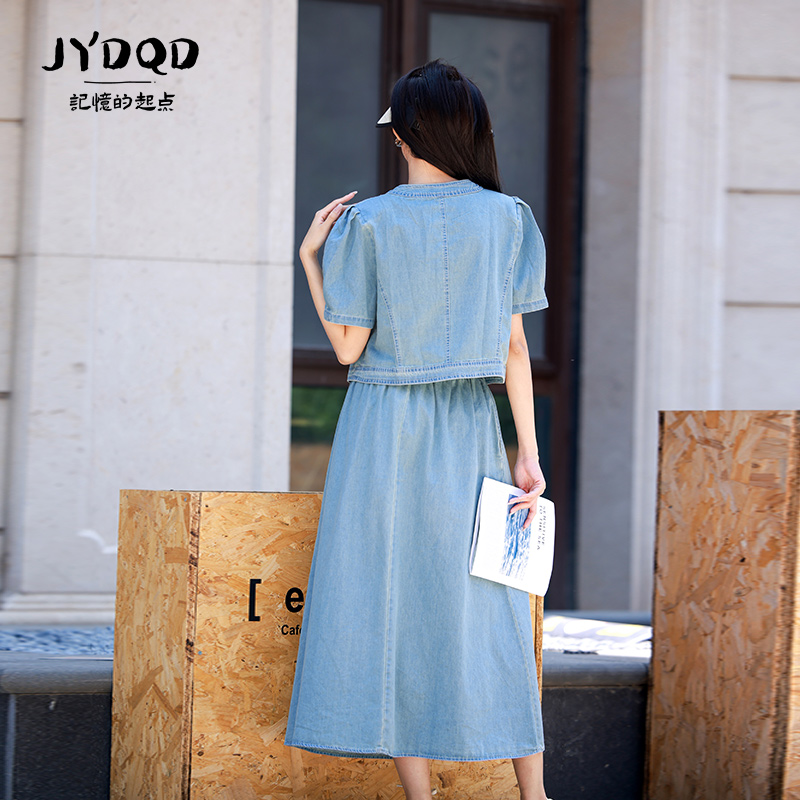 记忆的起点套装2023夏季港味活泼减龄遮肉薄款牛仔套裙67AX82376W