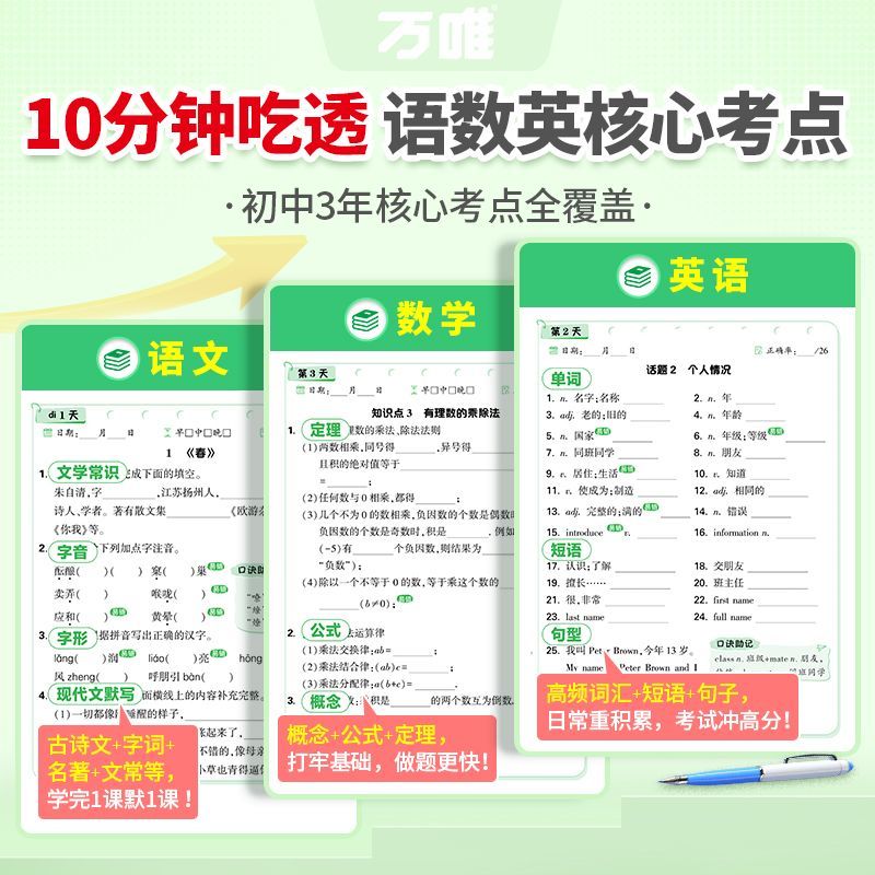 2025秋 万唯中考语数英考点默写初中知识点大全考前复习知识清单 初中七八九年级考前必备复习总结重难点辅导资料书初一二三