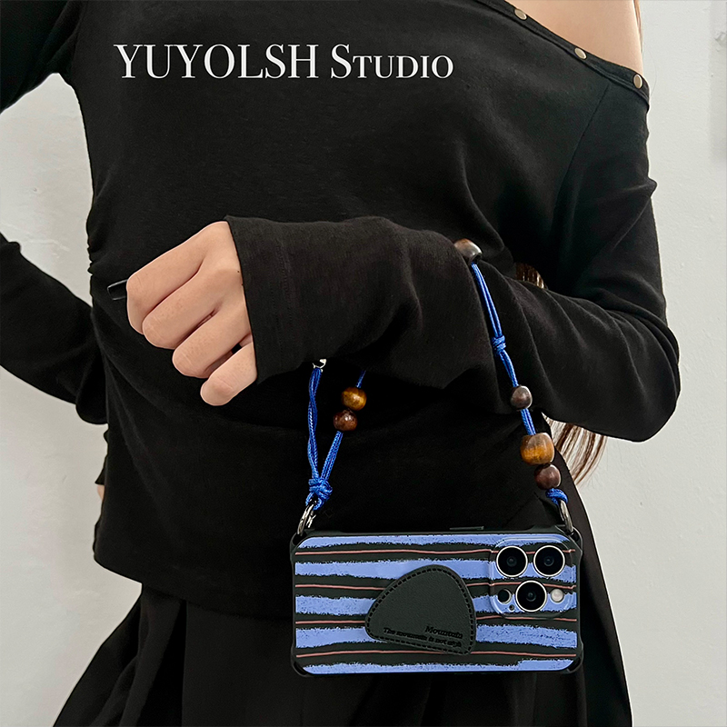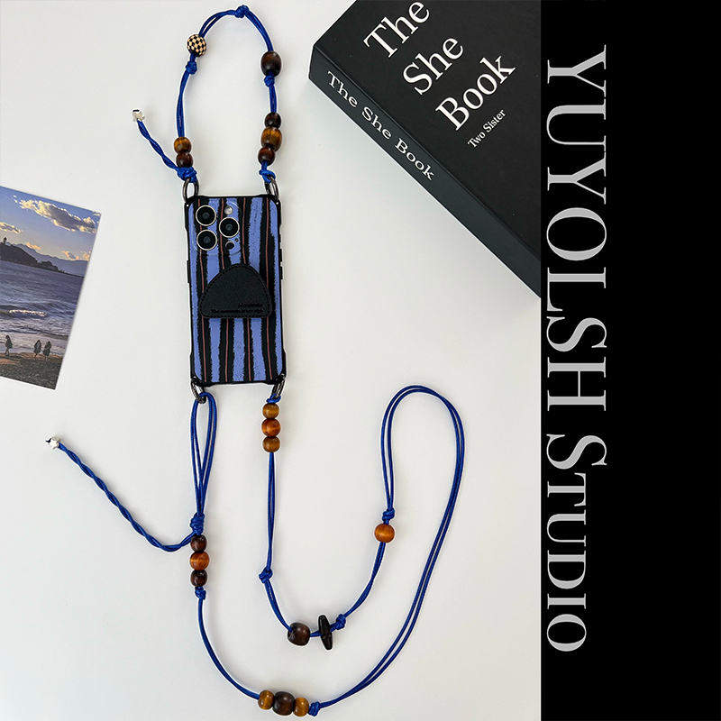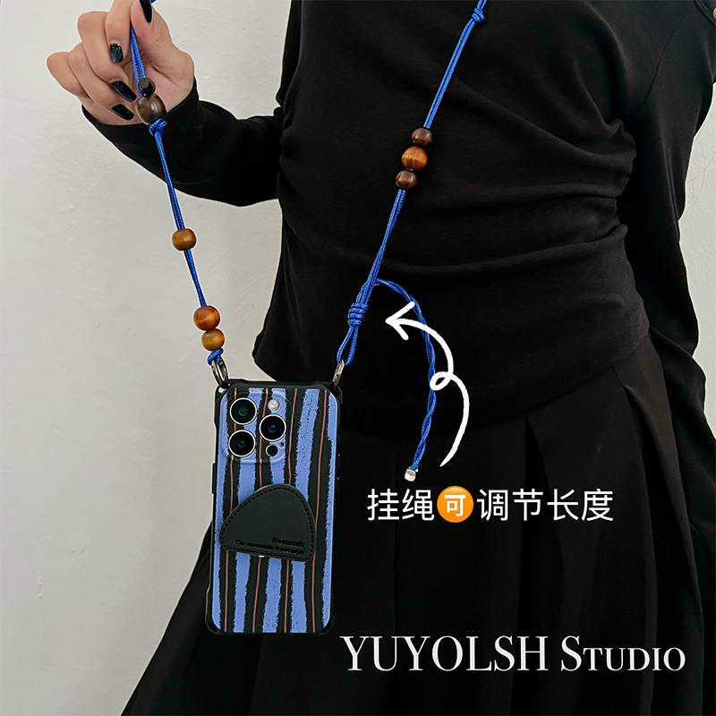 【海盐可露丽】原创皮质山丘支架适用于苹果17pro手机壳曲纹华为pura70背带斜跨链条小米15ultra调节挂绳斜挎