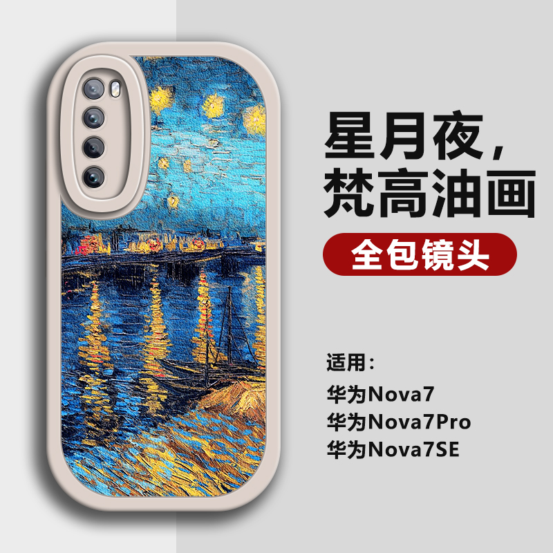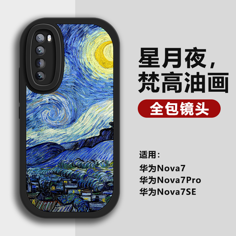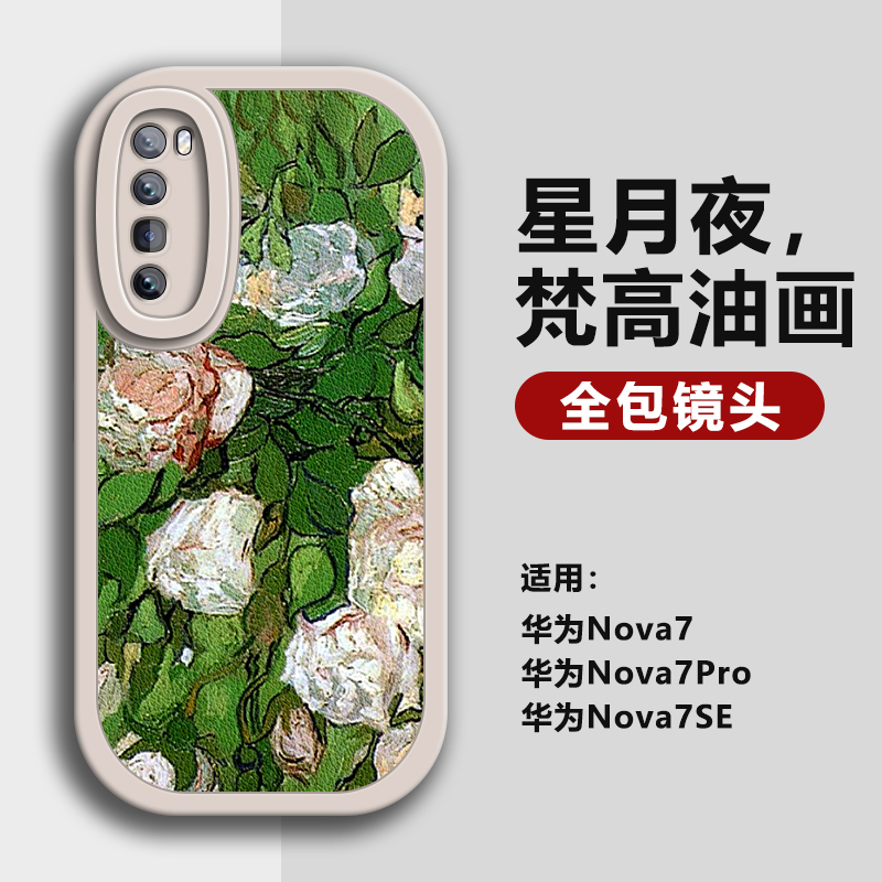 梵高油画适用华为Nova7手机壳nova7pro全包镜头硅胶软壳nova7se乐活版复古风野玫瑰星空高级感小羊皮女款磨砂