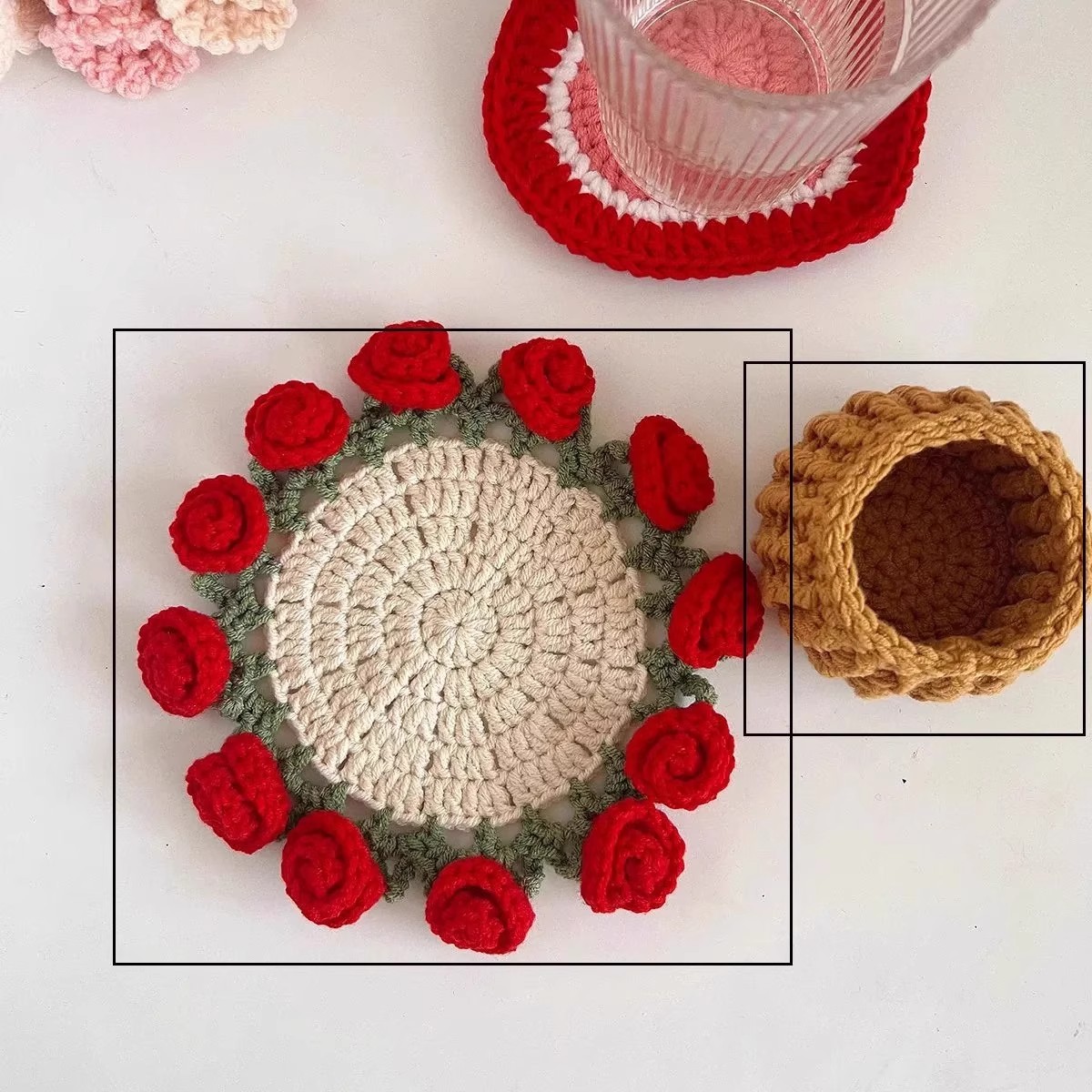 成品玫瑰花束杯垫毛线钩织杯变手捧创意教师节礼物编织花朵朋友